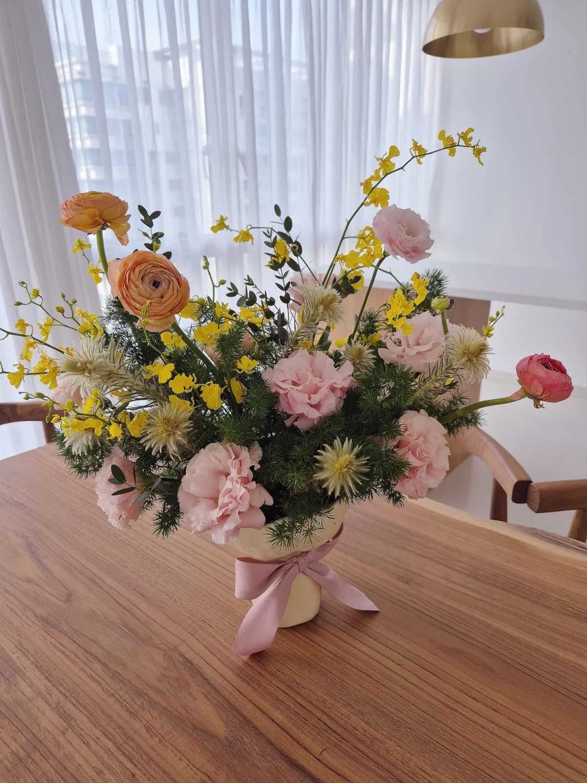 Imagine a bouquet that looks like its freshly wrapped and sitting nicely on your table top.. … only for it to be in a quirky ceramic vase shaped like our wrapped bouquets! Best of Both Worlds is a bright cheerful arrangement perfect for this lunar new year! A playful and charming gift for anyone who likes something fresh and unique!